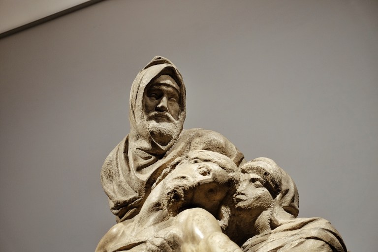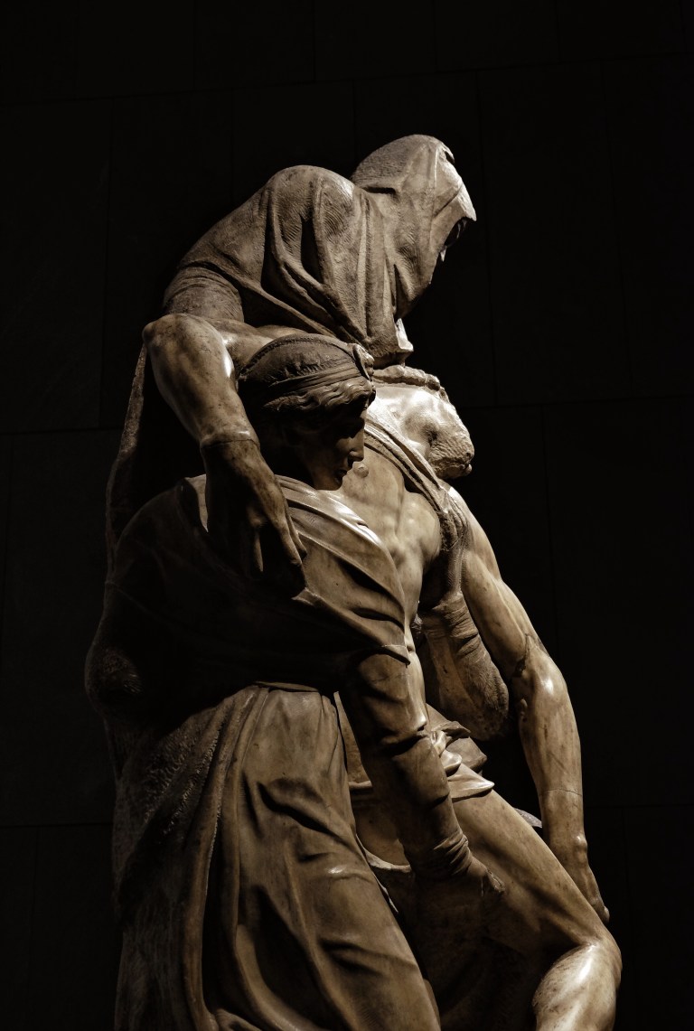 Por eso le dedico una entrada para ella sola. Con el permiso de Michelangelo Buonarroti os presento a la Pietà. Seguramente existen cientos de fotos, miles tal vez, sobre este trozo de Mármol pero así es como la vi y la sentí yo….