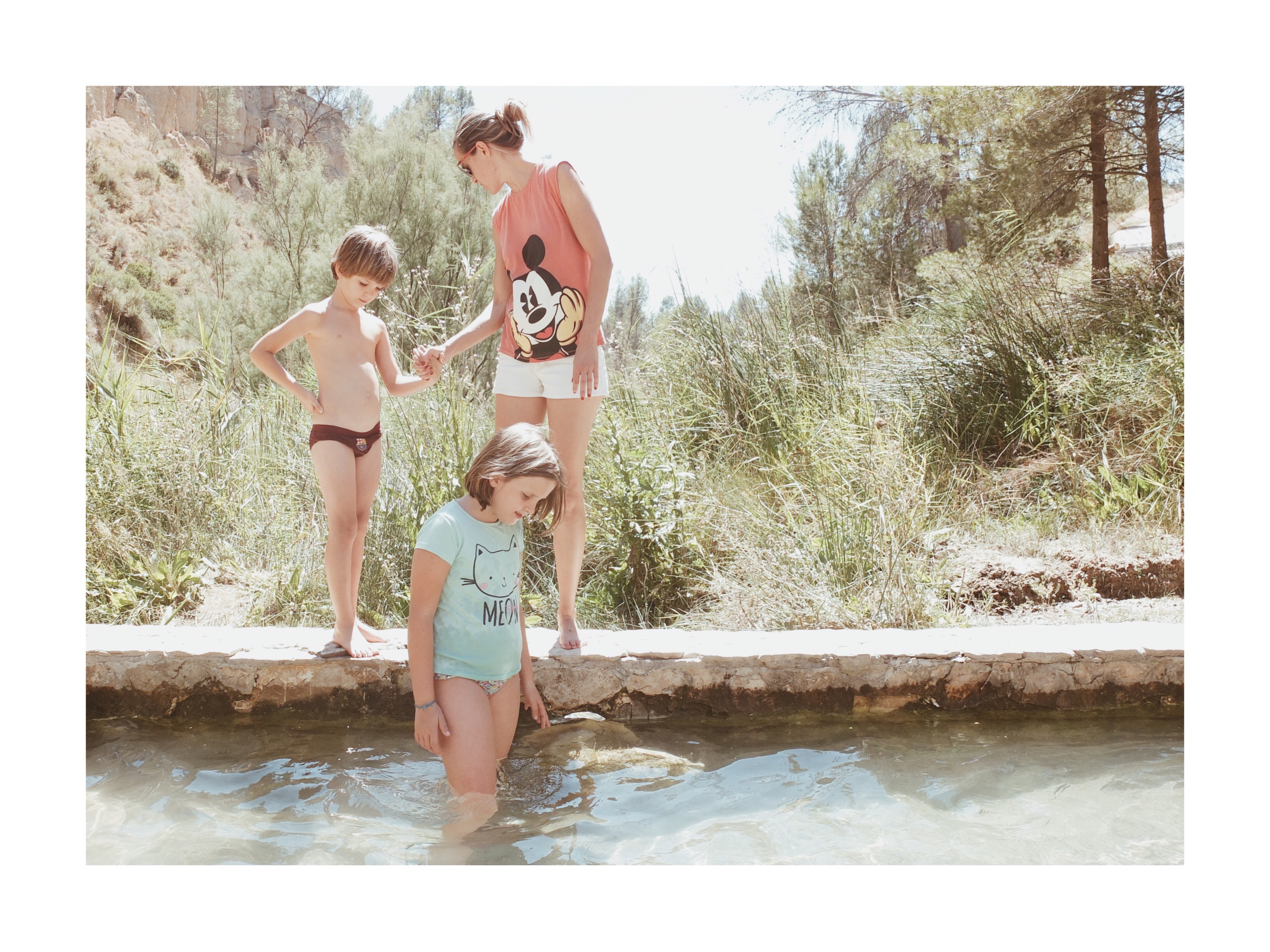 Entre sol, polvo y vegetación, tras la larga caminata se nos aparece esta pequeña «alberca»a modo de Oasis para brindarnos los treinta y tantos minutos más refrescantes del verano en el nacimiento del río Cabriel. Suerte que la pequeñita X-10 de Fuji nos acompaña para inmortalizarlo.